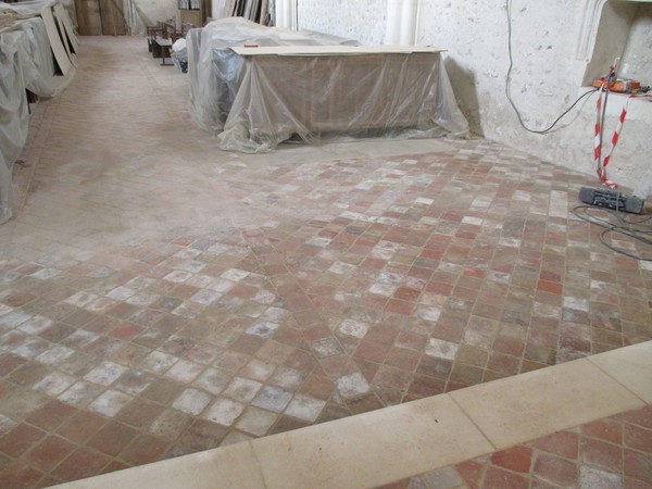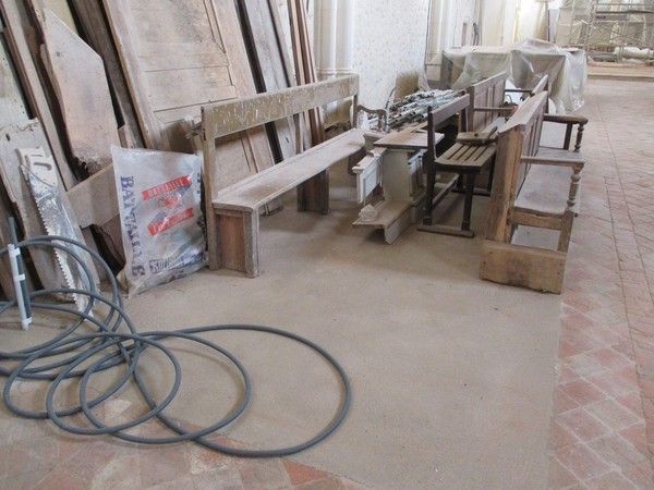 - Sol de la nef et du choeur en cours de restauration.