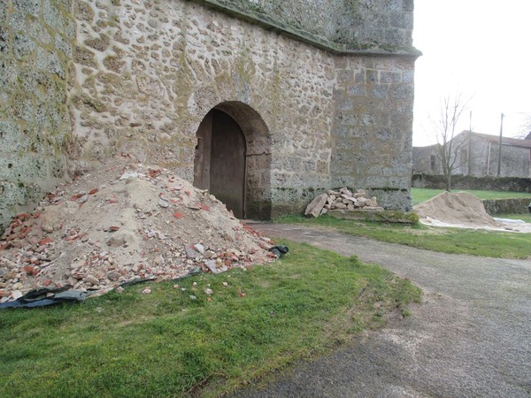- Restauration en cours de l’encadrement autour des fonts baptismaux