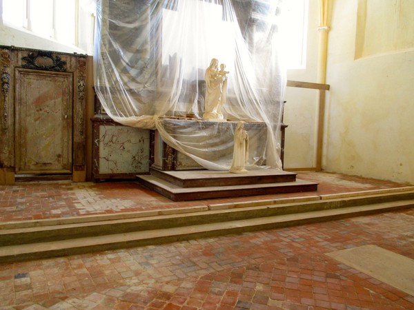 Sur le chantier (mars 2016) 17 mars 2016 La marche vers l’autel est presque terminée 😃… mais il y a encore du travail pour restaurer le mur du XIIIème donnant sur le clocher. Nous cherchons de nouveaux mécènes! Chantier Photos