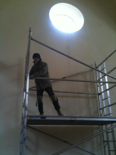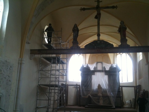Un premier vitrail se prépare 3 mai 2016 Préparation de l’installation du vitrail par Didier Quentin !… Vitrail