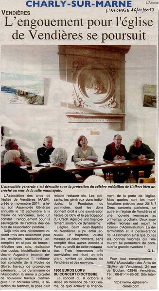 Dans l'Axonnais (novembre 2017) 25 novembre 2017 Résumé de l’Assemblée Générale dans l’Axonnais. Presse