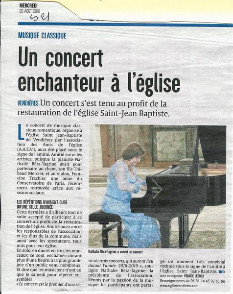 Concert du 26 août 2018 - revue de presse 4 septembre 2018 La presse, fidèle soutien de l’AAEV. Presse