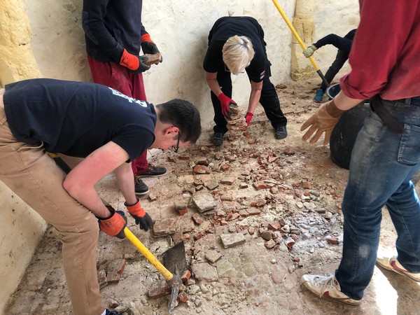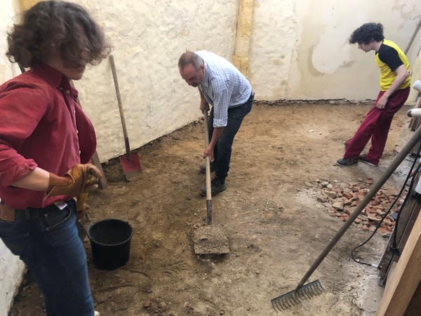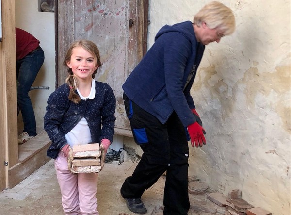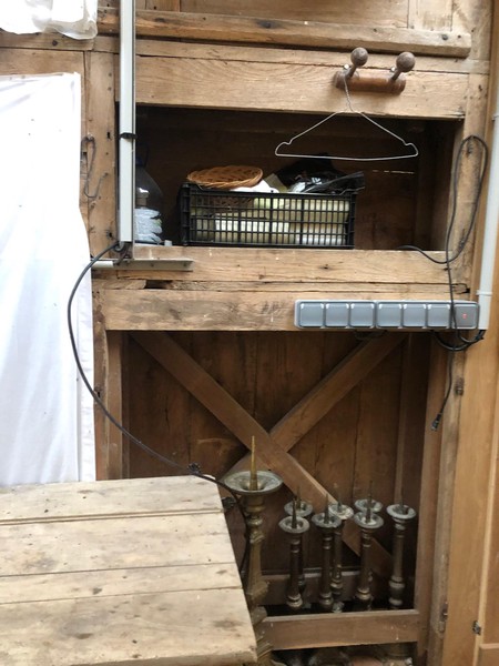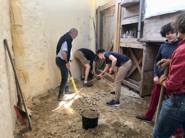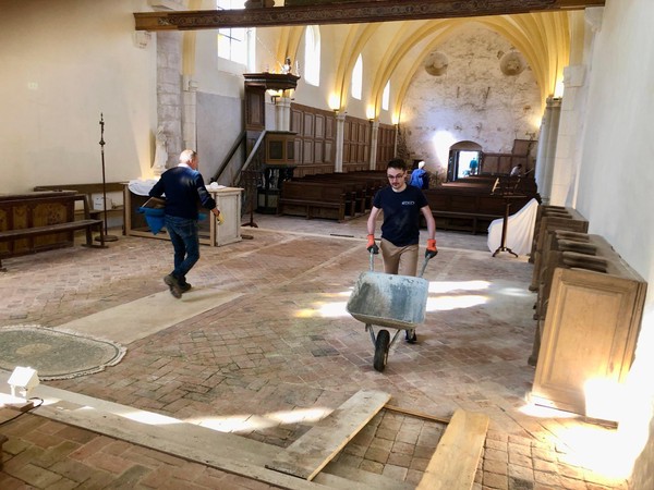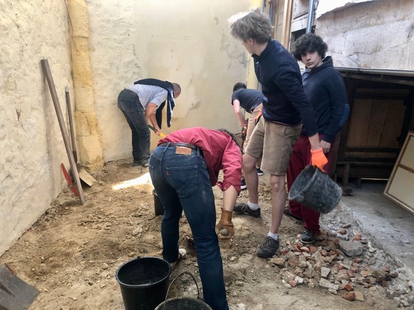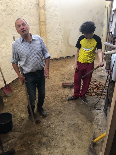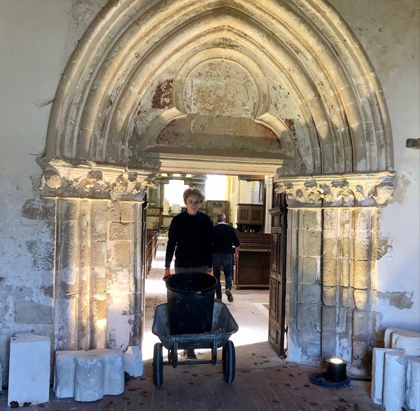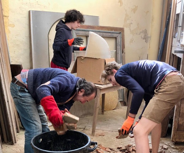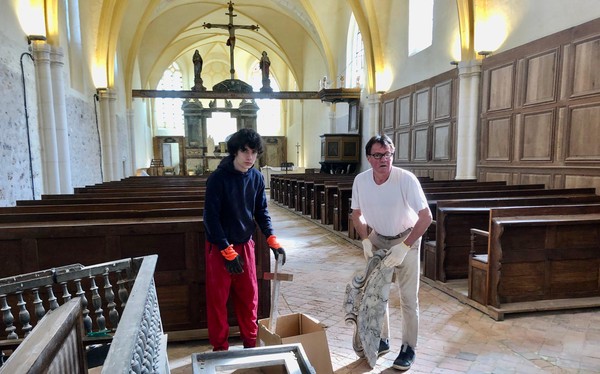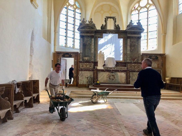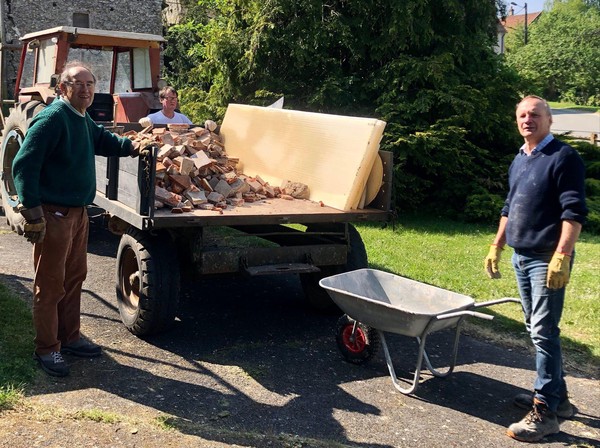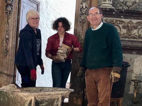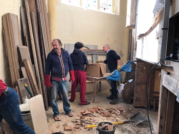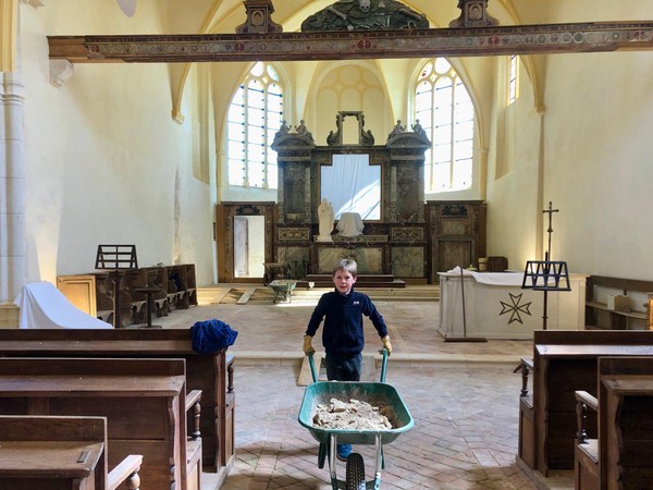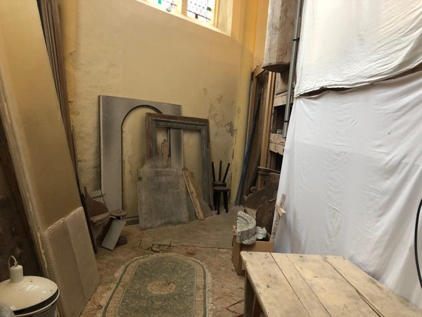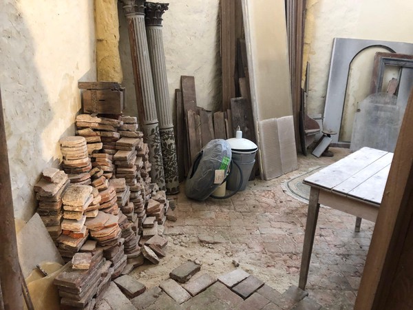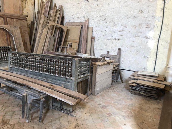 Débuts des travaux de la future sacristie! On vide tout, on trie et on casse… avec respect.
