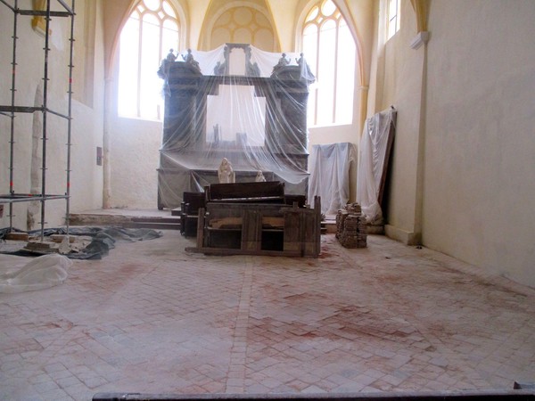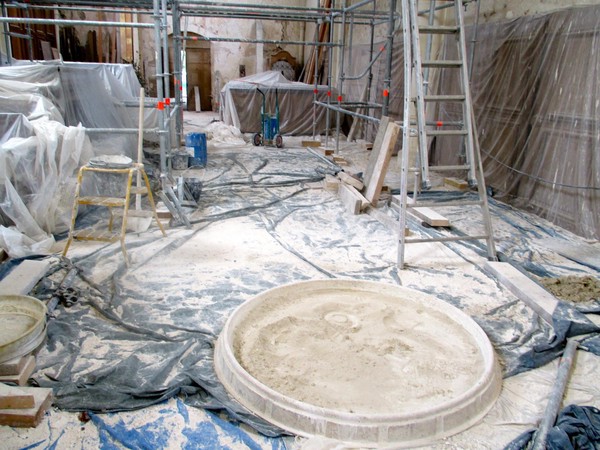 Sur le chantier (juillet 2015) 5 juillet 2015 Bon… il y a encore du boulot pour installer le public et le piano de concert mais… cela avance bien. Bravo à l’équipe de l’entreprise Letoffé : c’est très beau ! Photos Chantier