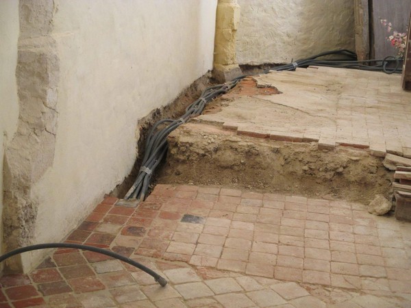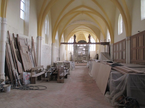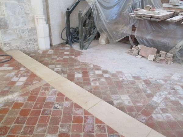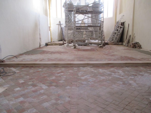 - Sol de la nef et du choeur en cours de restauration.