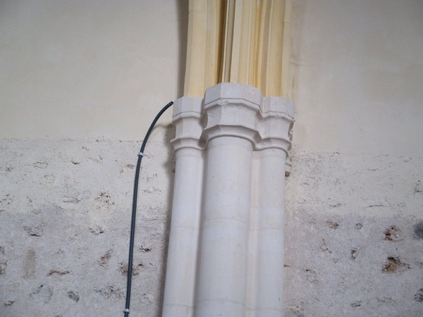 - Restauration en cours de l’encadrement autour des fonts baptismaux