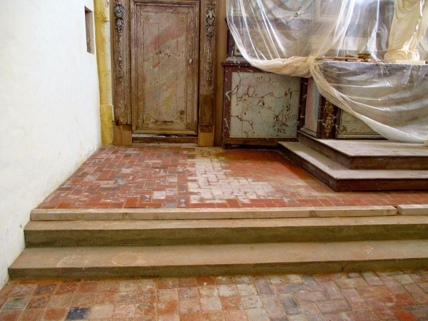 Sur le chantier (mars 2016) 17 mars 2016 La marche vers l’autel est presque terminée 😃… mais il y a encore du travail pour restaurer le mur du XIIIème donnant sur le clocher. Nous cherchons de nouveaux mécènes! Chantier Photos
