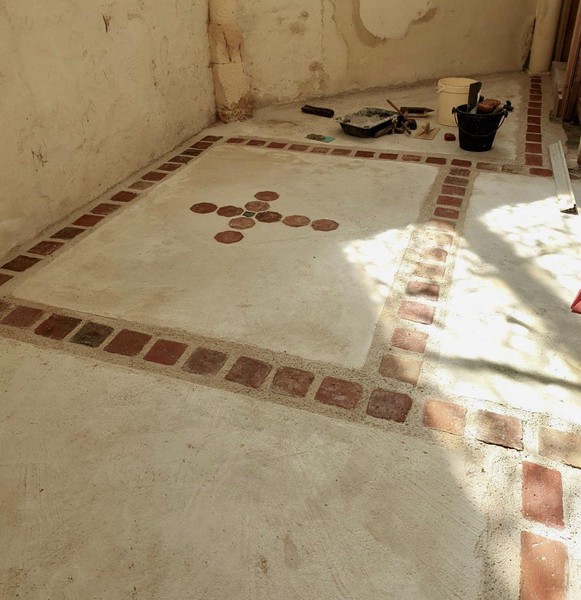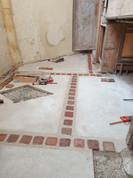 La nouvelle sacristie, suite 28 mai 2022 Premières photos de la pose des carreaux de la nouvelle sacristie. Bravo et merci à Dominique Ch. et Claire S. pour leur talent et leur temps offert si généreusement ! Photos Chantier Sacristie